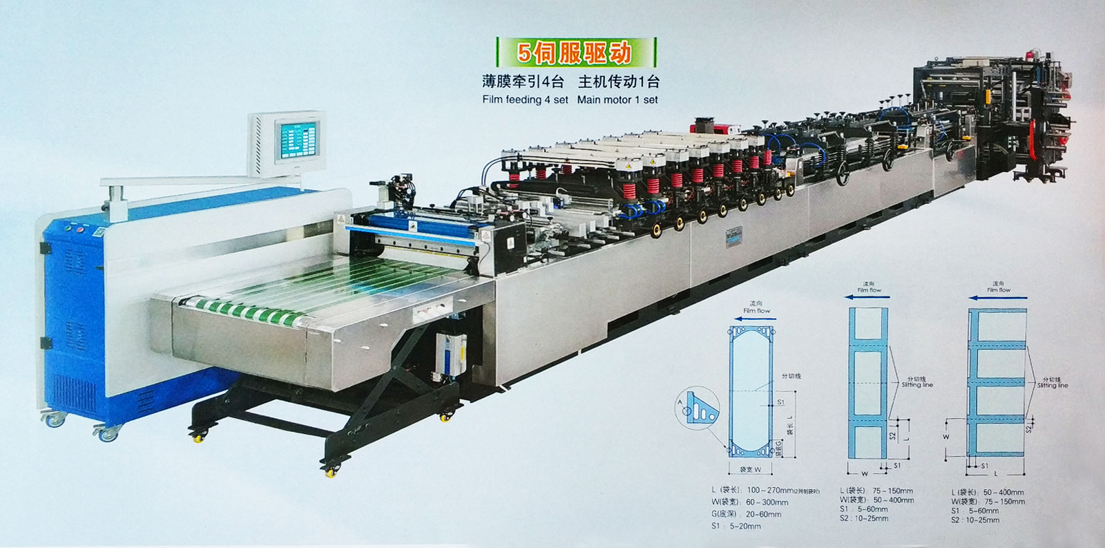 制袋寬度:≤600mm。 制袋長(zhǎng)度:50-320mm(超長(zhǎng)時(shí)可采用倍送裝置),程序設(shè)置320mm 以上自動(dòng)轉(zhuǎn)換成倍送。 注:由于袋型、材料等原因?qū)嶋H運(yùn)行速度會(huì)有所下降。